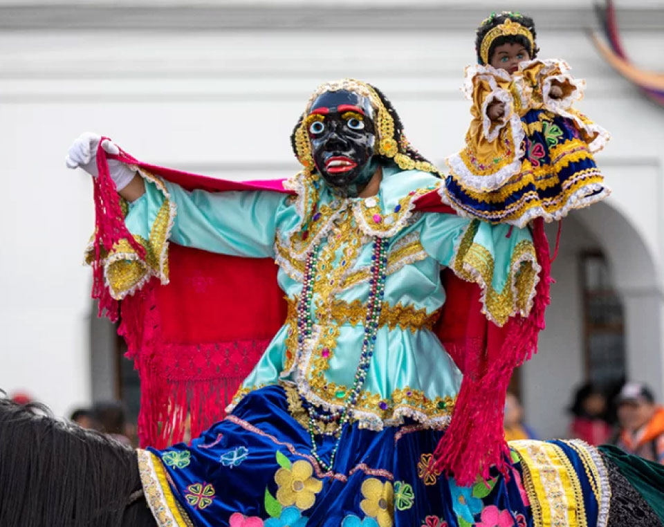 Every year, Latacunga is transformed into a vibrant stage where the streets are filled with comparsas, elaborate costumes and traditional band music. The Mama Negra is a popular theater motivated by faith and gratitude, as we can see in the two versions of the festival detailed below:
